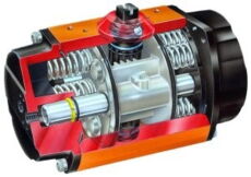 Specials: - Piston support rods with six bearings minimise internal wear and maximise performance life - Anodised aluminium construction for anti-corrosion and superior wear performance on internal surfaces - Multi-spring failsafe concept ensures actuator operation in the unlikely event of spring fracture (spring return models) - Unique unrestricted air flow through support rods gives fast operation speeds as standard – and also provides greater safety (centre chamber cannot be pressurised with end cap removed) - Compact failsafe size as per double-acting – minimises space requirements - All parts sealed and greased for life