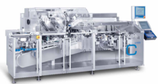 The UPS 1030 ET is a highly efficient universal machine with platen sealing. ET stands for the single-stroke mode of operation. This means that all stations for the main functions forming, sealing and punching operate in the same cycle and are moved by a central drive, while transportation of the web through the machine is intermittent. The UPS 1030 ET is designed to cope with all applications and packaging variations of modern pharmaceutical production. It reliably processes solid and liquid dose products.