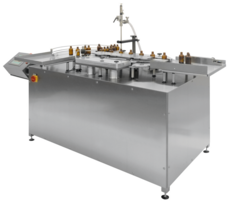 Fully automatic filling and closing system for bottles (glass / plastic), vials, with
