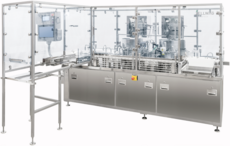 Fully automatic filling & closing system for bottles (glass / plastic), vials, jars with plugs, dropper inserts; for rotary, Pilverproof and bounce closures; with pump sprays or measuring cup